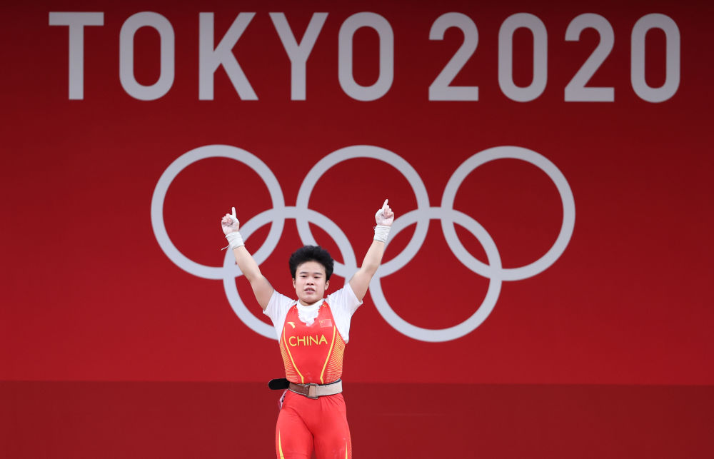 7月24日,在东京奥运会举重女子49公斤级决赛中,中国选手侯志慧夺得冠军。新华社记者 杨磊 摄