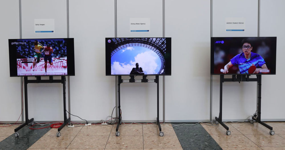 在2020东京奥运会主新闻中心大厅,IOPP(国际奥林匹克摄影队)专属大屏分别展示美联、路透、法新等几家机构在东京奥运期间的图片佳作。这代表着体育摄影的奥运水平,是体育摄影最高水准之间的“奥运比拼”。从东京奥运会开始,新华社的图片展示屏加入了这个队列。