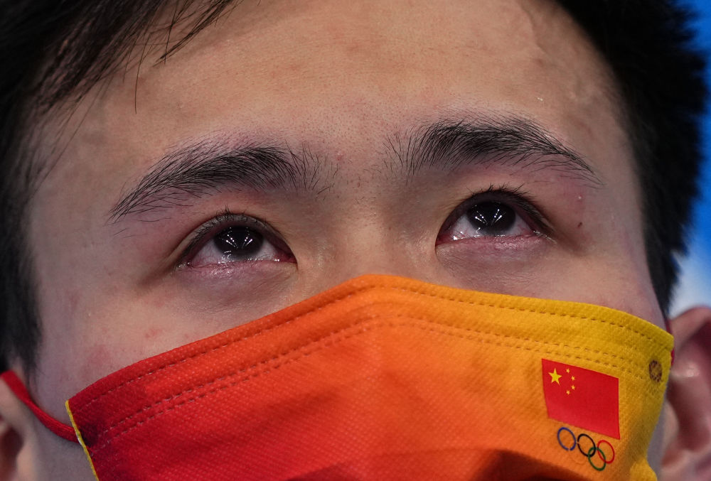 在处理中国选手谢思埸获得跳水男子三米板的一组即拍即传图片时,记者拍摄的一张谢思埸在颁奖仪式上的照片引起了我的注意。夺冠后站上最高领奖台的运动员眼中闪烁泪花。我在对这张照片进行剪裁时突出了这一细节,用特写展现的方式把镜头推进,聚焦运动员噙着泪水的双眼,以及口罩上的中国国旗和五环标志。把记者拍摄到的动人细节放大并推到极致来打动人心,这张图片也成为当日的新华奥运佳作。