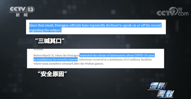 一位五角大楼发言人通过电子邮件解释说,这是因为武汉军运会是在新冠暴发前举行的。