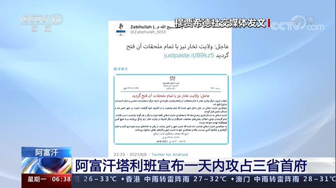 这是塔利班一天之内宣布攻占的第三个首府城市。8日早些时候,穆贾希德宣布塔利班已攻占阿富汗北部的昆都士省首府昆都士市和萨尔普勒省首府萨尔普勒市。