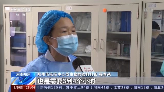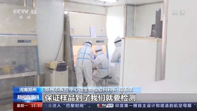 郑州市疾控中心微生物检验科科长 程春荣:每天的量是300多份,比这个全员检测听着数是少,但是我们是做复核鉴定工作,我们是样品随来随检,人员是24小时在岗在位, 保证样品到了我们就要检测。
