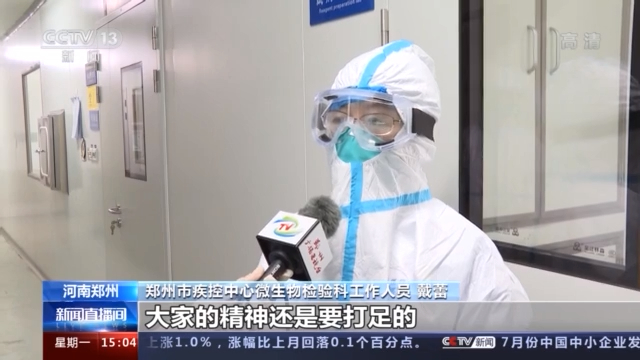 郑州市疾控中心微生物检验科工作人员 戴蕾:样品是不断送到我们实验室,分批次比较多,我们人员又比较紧张,作为检测复核样本都是高度紧张的, 所以我们基本上要保证大家的精神还是要打足的。