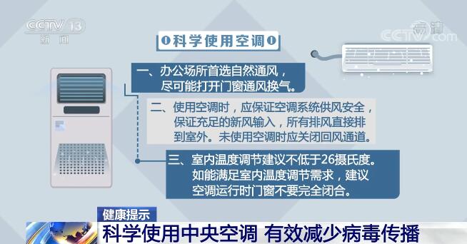 央视网消息:炎热的天气,空调绝对少不了。但在办公场所这样的区域,使用中央空调很有可能导致细菌交叉感染。科学使用空调,能有效减少病毒的传播。