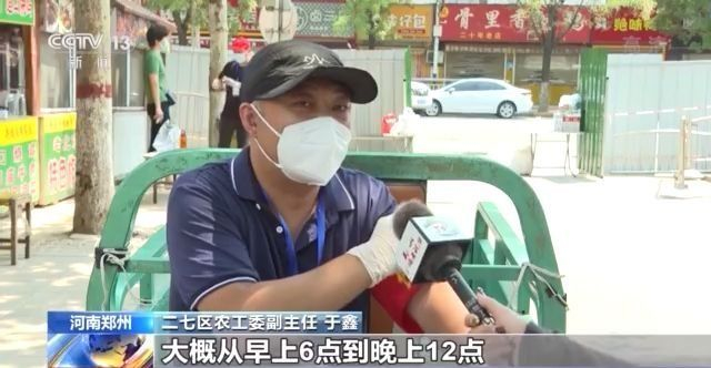二七区农工委副主任 于鑫:在这个卡点大概从早上6点到晚上12点,每天从卡点到居民楼院给老百姓送物资,大概每天要送七八十趟。