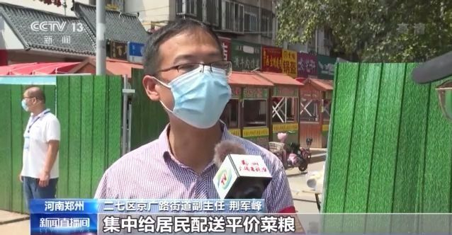 二七区京广路街道副主任 荆军峰:每两天由这些市场商超集中给居民配送平价菜粮,来解决大家的生活需求。同时我们也在各个楼院的居民群里,积极向大家推送网络购物的一些相关的须知,相关的内容让大家也可以通过网上购物的途径,满足自己一些个性化的需求。