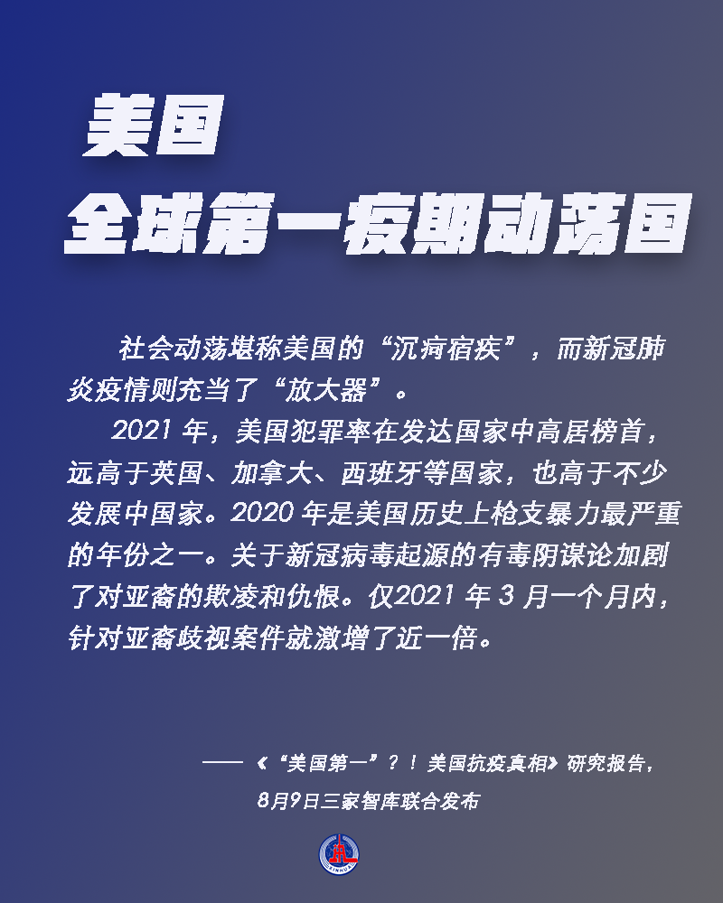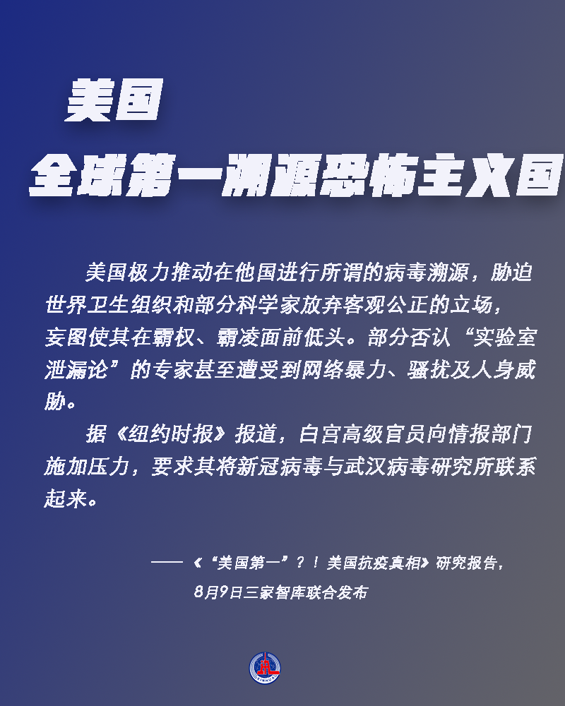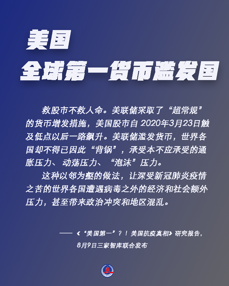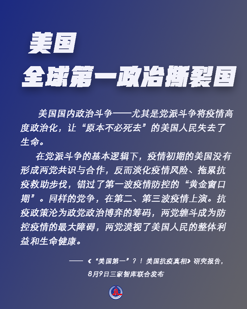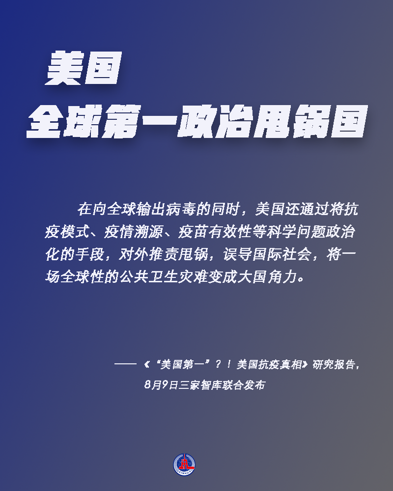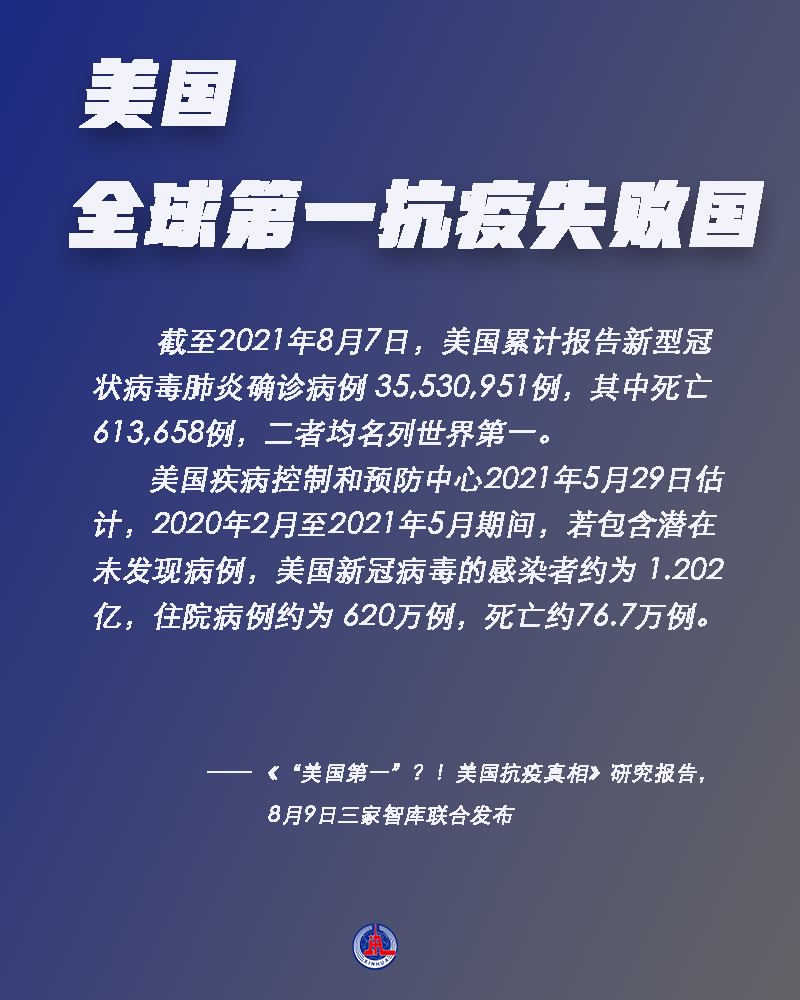 8月9日,中国人民大学重阳金融研究院、太和智库、海国图智研究院联合发布《“美国第一”?!美国抗疫真相》研究报告,系统分析曾被美媒评为“抗疫全球第一”的美国在疫情应对方面的真实情况,并实锤美国在八个方面“全球第一”。到底是哪八个方面?为什么这么说?一起来看。