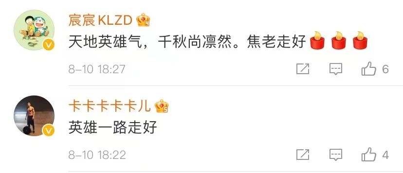有网友在悼念焦景文时表示,新时代,卫长空、打胜仗、干事业,更需要空战英雄焦景文这样的“铁杆僚机”:你在冲锋,我来掩护,甘为战友筑起安全屏障。