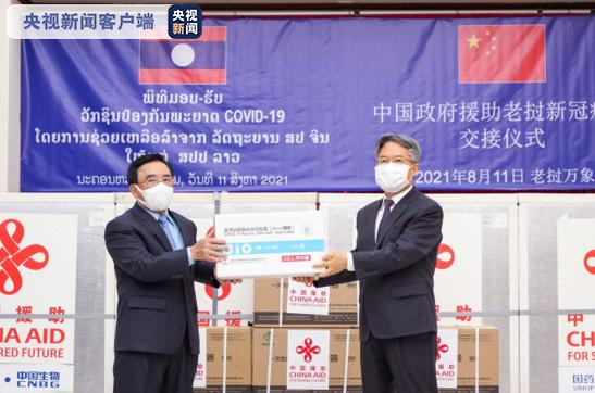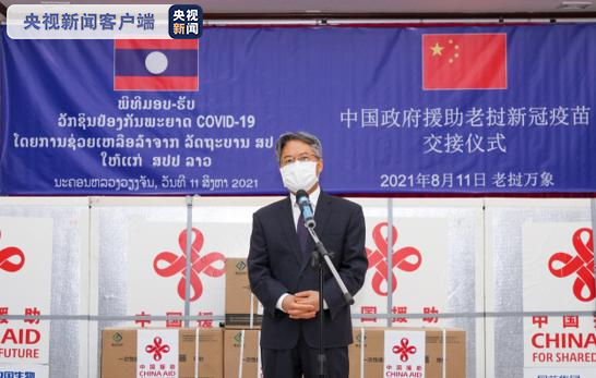 当地时间8月11日,中国援助老挝第五批新冠疫苗交接仪式在老挝首都万象举行。中国驻老挝大使姜再冬向老挝人民革命党中央政治局委员、政府总理潘坎·维帕万移交中方援助疫苗。