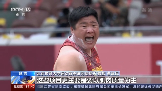 比如投掷类项目,像巩立娇,她更多以爆发力为主,这些项目以肌肉质量为主,所以说在她的饮食中,蛋白质所占的比例就要比一般的项目高。比如说耐力性项目,我们把糖适当增加到可能65%,像竞走、马拉松甚至可以上升到70%。