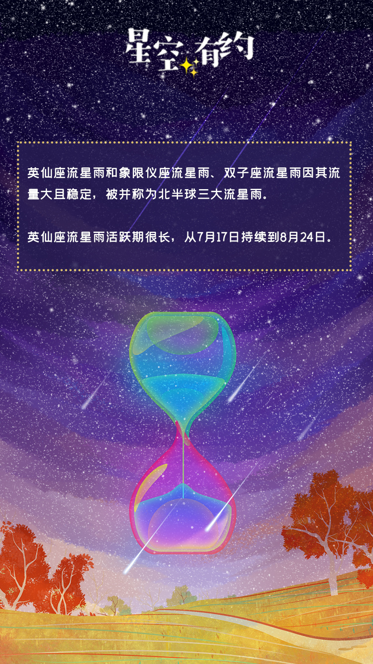 英仙座流星雨和象限仪座流星雨、双子座流星雨因流量大且稳定,被并称为北半球三大流星雨。英仙座流星雨活跃期很长,从7月17日持续到8月24日。“根据国际流星组织的预报,本次英仙座流星雨的极大期出现在北京时间8月13日3时左右,极大期时天顶每小时出现的流星将会有110颗左右。”王科超说。