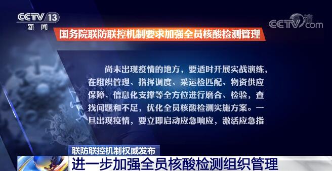 通知要求各地在开展全员核酸检测相关工作过程中,要实行网格化、精细化管理,摸清待检测人员底数,做到不缺1户、不漏1人,并做好预约管理。要加强采样现场的组织引导,避免人群聚集,加强医疗废物清运,严格落实采样点感染防控各项要求,确保全员核酸检测时没有漏采人员,没有因现场人群聚集造成疫情传播。同时,要建立健全采、送、检匹配机制,避免出现样本滞检或检测能力闲置。