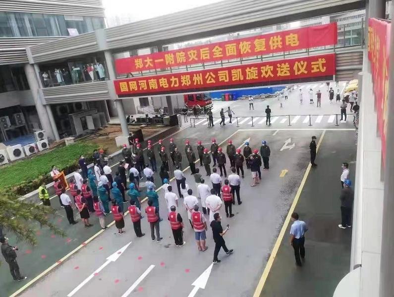 8月11日上午,郑州大学第一附属医院负责人为公司抢修人员举行凯旋欢送仪式,经过不间断抢修,8月5日、9日,阜外华中心血管病医院、郑州大学第一附属医院(河医院区)相继恢复正常供电。至此,郑州市受极端暴雨灾害影响的重要用户均已恢复正常供电。