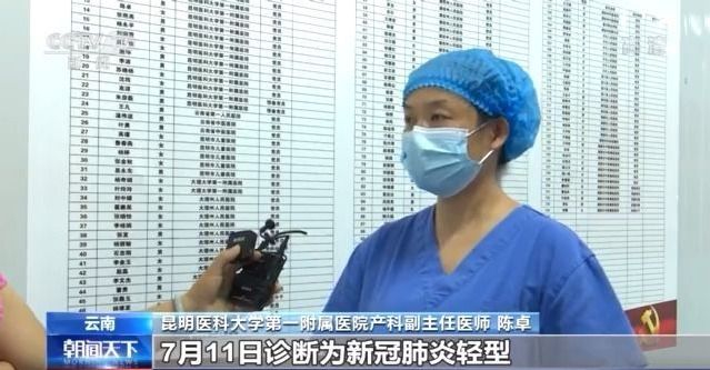 昆明医科大学第一附属医院产科副主任医师 陈卓:患者入院以后,7月11日诊断为新冠肺炎轻型,7月12日修正诊断为普通型。今天能顺利分娩,新生儿也转入专护病房,有专门的医生团队照顾,妈妈现在病情平稳。
