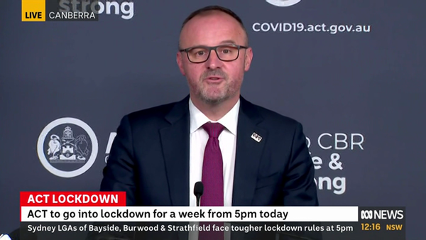 首都领地首席部长安德鲁·巴尔于当日发布会上宣布,从当地时间12日下午5时开始,首都领地进入“封城”状态,为期一周。