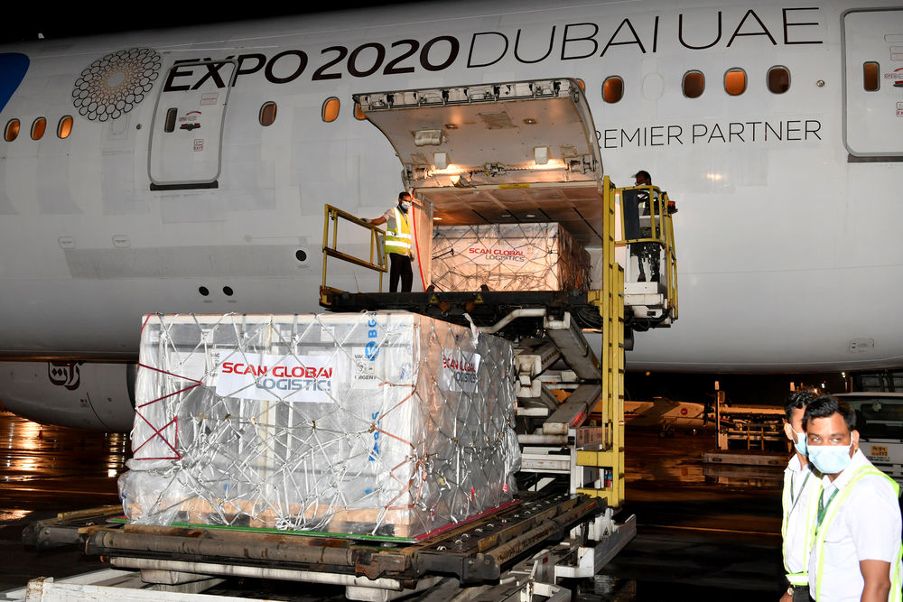 8月11日清晨,中国国药集团供应“新冠疫苗实施计划”(COVAX)的新冠疫苗抵达巴基斯坦伊斯兰堡国际机场。