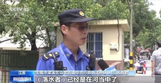 江苏无锡市梁溪区山北街道综合行政执法中队队员 杨晓君:(我们)赶过来的时候,(落水者)已经是在河的当中了。发现这个情况以后,我立马就从桥上直接跳到河里面游过去。
