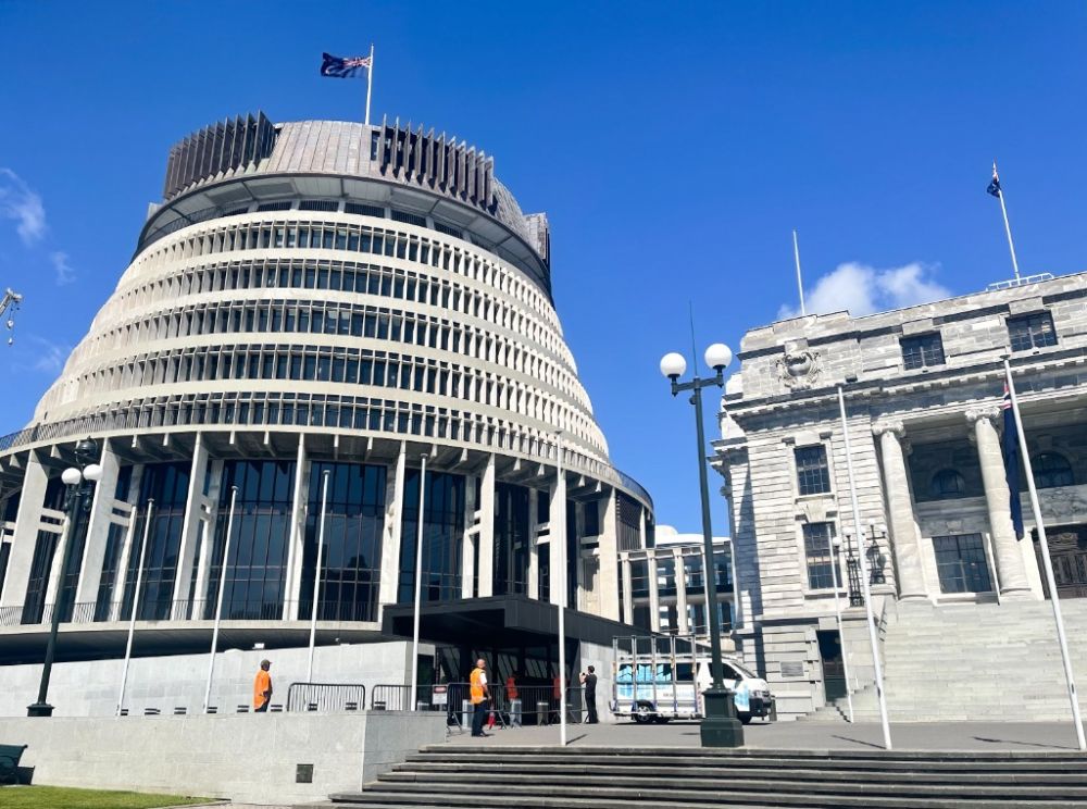 这是1月13日在新西兰惠灵顿拍摄的新西兰国会大厦入口。(新华社发,孟韬摄)