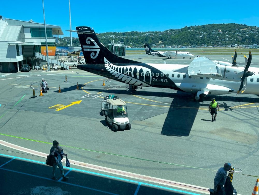 这是1月13日在新西兰惠灵顿国际机场拍摄的新西兰航空的客机。(新华社发,孟韬摄)