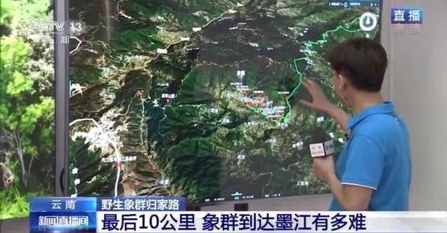 总台央视记者 蒋树林:两个多月过去了,我们的象群可以说是翻山过岭、跋山涉水。折返的时候,我们梳理了一下大象的“三难”。第一个就是“渡江难”,它们当时出发时路上是枯水期,所以大象过河非常轻松,而且当时象宝宝还没有出生。但它们现在往南折返回家的路上正值汛期,过河就面临很多困难。比如说在8月8日,水流变化时大时小,情况比较复杂,对于出生时间不长的象宝宝来说,是一个巨大的考验。