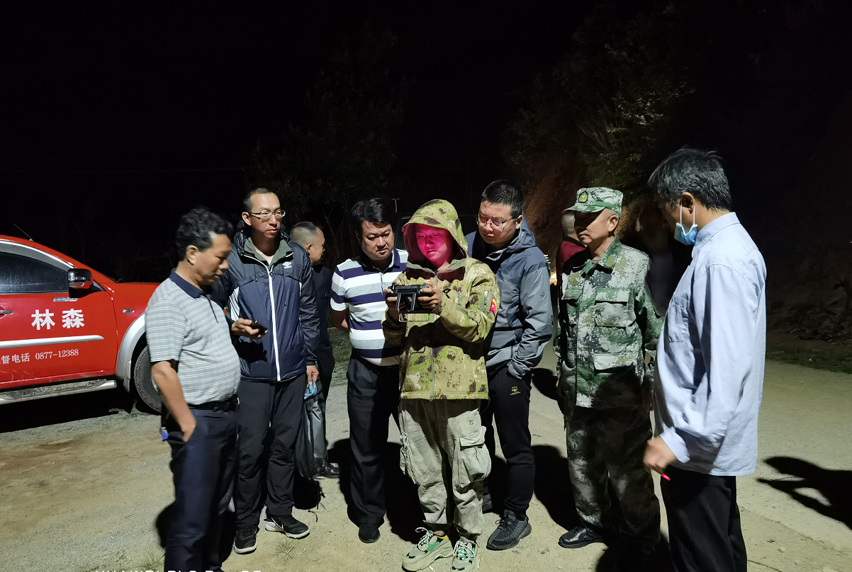 凌晨时分,工作人员仍在监测着“南回”的象群。(图片元江县林业和草原局提供)