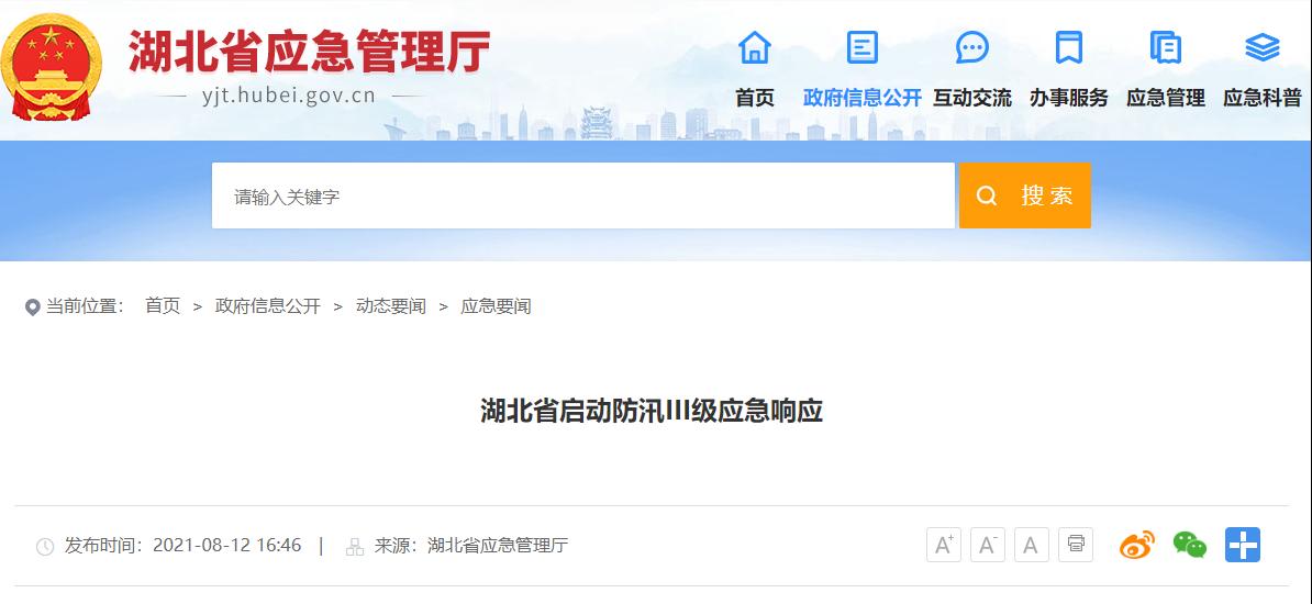 记者从湖北省应急管理厅获悉,湖北省防汛抗旱指挥部定于今天(8月12日)16时启动防汛III级应急响应。