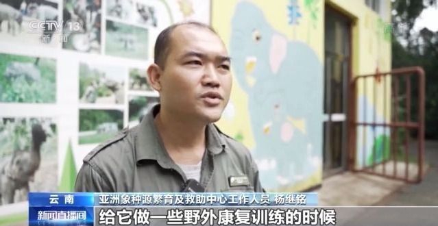 亚洲象种源繁育及救助中心工作人员 杨继铭:我们“象爸爸”每天给它做一些野外康复训练,条件比较成熟的时候,提前做放归的(准备)工作。