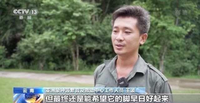 亚洲象种源繁育及救助中心工作人员 王波:看到它的脚成这样,我也非常心疼。但最终还是能希望它的脚早日好起来,然后能够出去到山上野外康复训练,回到它之前活泼的时候。