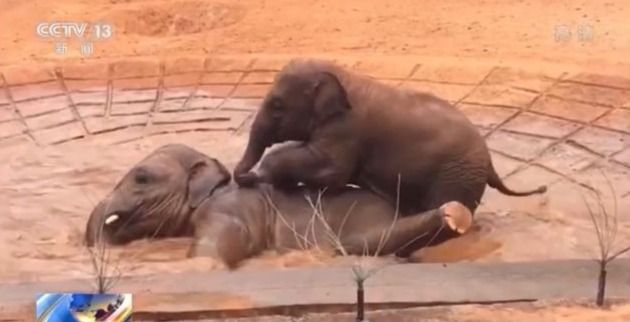 而吃饱喝足之后,这两只小象最喜欢的就是泡澡和玩泥巴,特别是最近天气炎热,它们最开心的就是玩水了。更温馨的是,小象玩耍戏水的时候,成象都在一旁守护,直到它们尽兴为止。