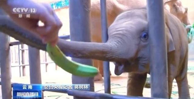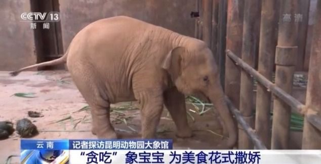 看到有人探访,小“欣愿”并不怯生,淘气地用象鼻隔着栏杆打招呼。当记者用象草和它“套近乎”的时候,象宝宝却并不领情。这时候,饲养员做出了提醒。