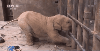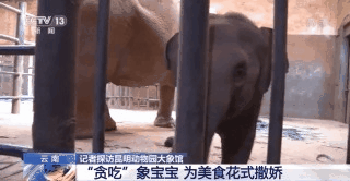 为了好吃的,“欣愿”完全不顾淑女形象,它半蹲在地面,屁股朝上,前肢着地,呼扇着大耳朵,象鼻灵活地四处打探。这样一幅“贪吃受宠”模样,让旁边另外一头稍大的小象顿时不开心了。它发出低沉的吼声,还不停在碰撞围栏。