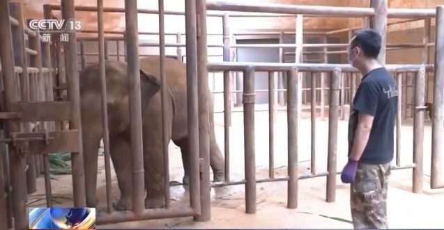 接连几天,云南发布高温黄色预警,温度在30多度。这对于象宝宝来说,户外活动就太热了。所以我们见到“欣愿”的时候,它就和自己的母亲“莫坡”躲在宽敞凉快的大屋子里,饲养员还贴心地给它们供应了新鲜的象草。
