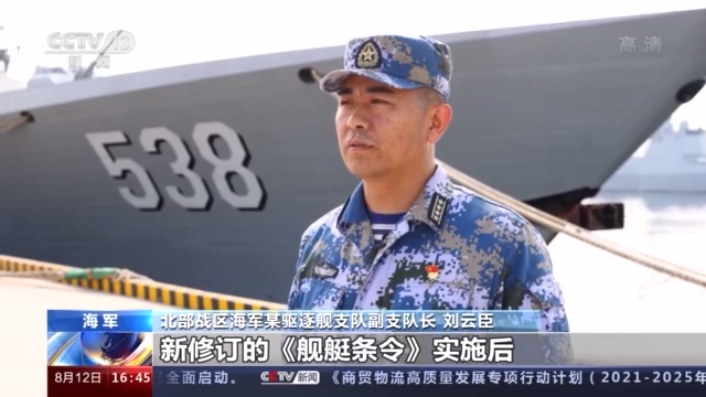 北部战区海军某驱逐舰支队大校副支队长 刘云臣:新修订的《舰艇条令》实施后,我们集中开展“条令学习贯彻月”活动,采取集中领学、交流研学、以考促学等方式,组织官兵逐条逐款深钻细研、加深理解运用,用新修订的《舰艇条令》推动海军水面舰艇部队建设迈上新台阶。