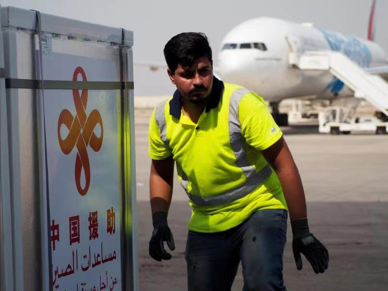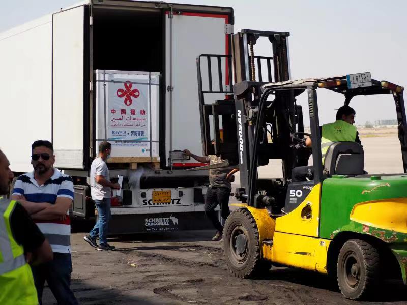 当地时间8月12日,第三批中国援助新冠疫苗运抵伊拉克首都巴格达国际机场。伊拉克卫生部和中国驻伊拉克大使馆工作人员到场迎接。
