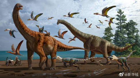 据介绍,中国丝路巨龙6节颈椎的长度约3米,保守估计其体长超过20米;新疆哈密巨龙的单个尾椎长度在210毫米至320毫米之间不等,保守估计体长约为17米。与中国丝路巨龙保存在一起的还有一块残破的哈密翼龙下颌,说明这些大型恐龙与哈密翼龙共同生活在约1.3亿年至1.2亿年前白垩纪的天空和陆地上。
