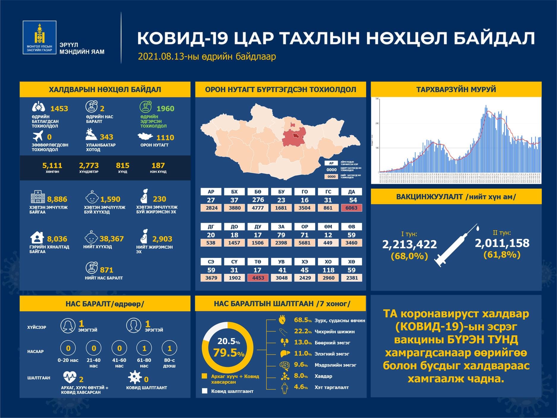 △截至8月13日蒙古国疫情情况相关统计数据(图片来源:蒙古国卫生部官网)