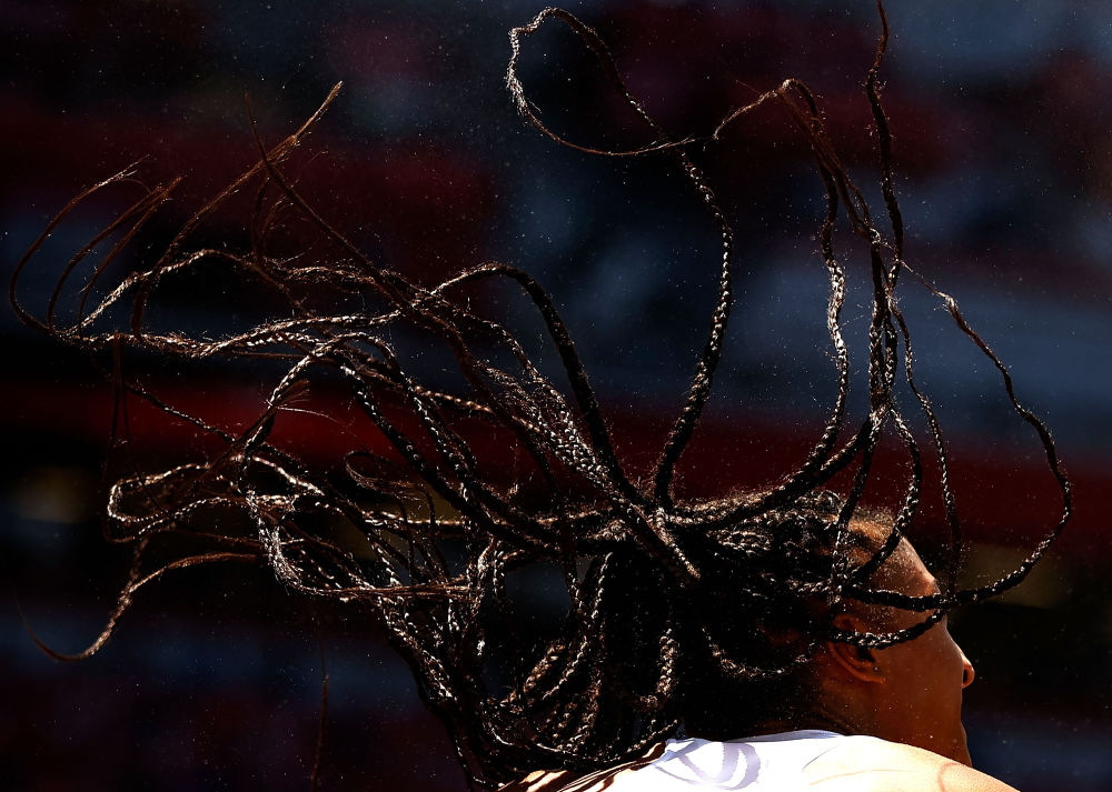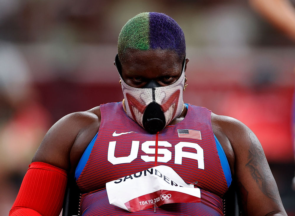 7月30日,美国运动员桑德斯在东京奥运会女子铅球比赛中。