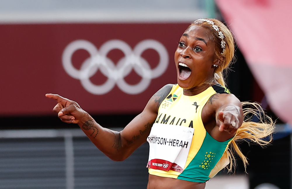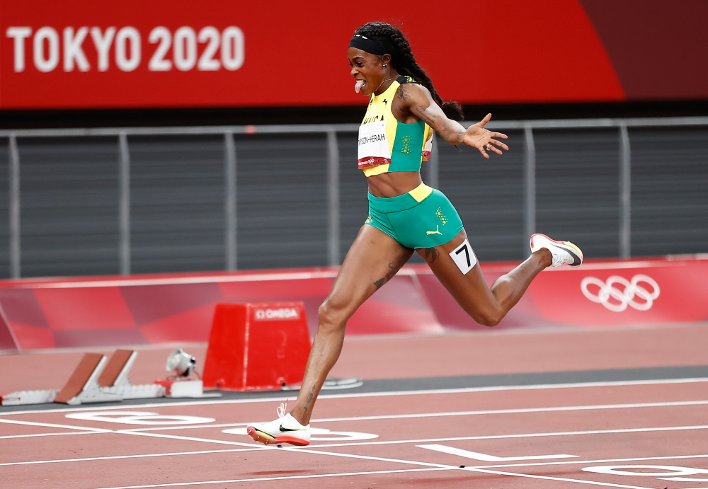 7月31日,牙买加选手埃莱娜·汤普森在女子100米决赛中冲刺。当日,东京奥运会田径比赛继续在东京新国立竞技场举行。