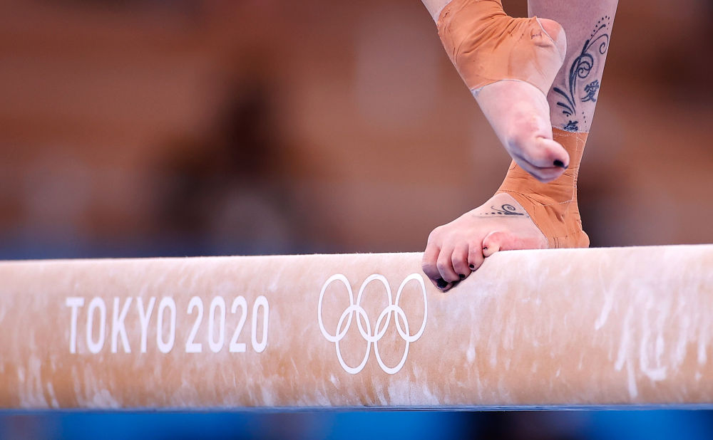 7月29日,瑞士选手朱莉娅在平衡木比赛中。当日,东京奥运会体操女子个人全能决赛在东京有明体操体育馆举行。