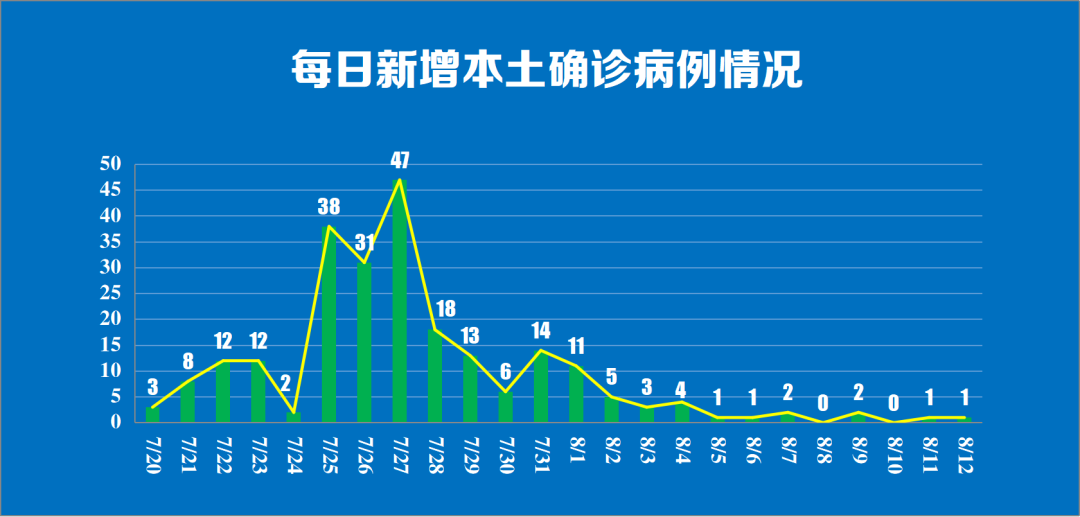 8月11日、12日,分别新增本土确诊病例1例。