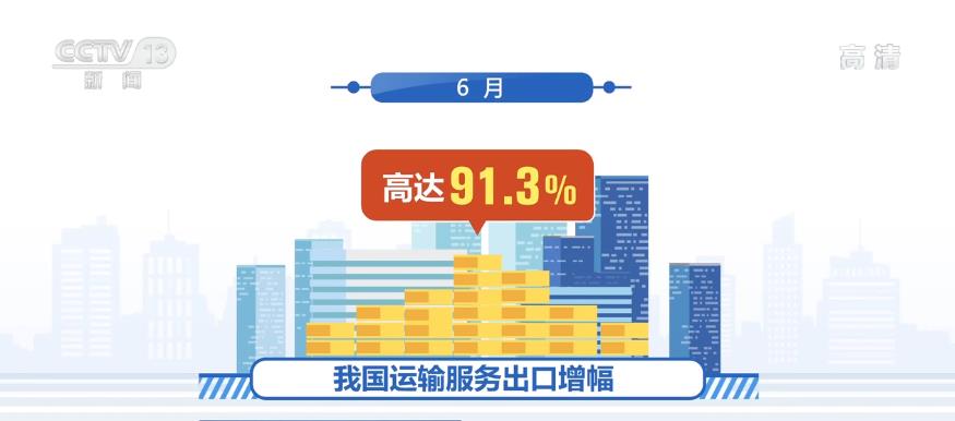 从服务贸易看,上半年,我国服务出口额11284.9亿元,同比增长23.6%;服务进口额12489.5亿元,同比下降5%。服务出口增幅大于进口28.6个百分点,带动服务贸易逆差下降70%。其中,知识密集型服务贸易占比达46.5%,比去年同期提升2.8个百分点;运输服务贸易规模持续扩大,上半年我国运输服务进出口额近7000亿元(6821.9亿元),同比增长43.1%,其中6月当月,我国运输服务出口增幅高达91.3%。