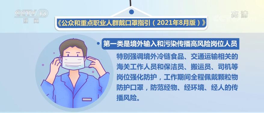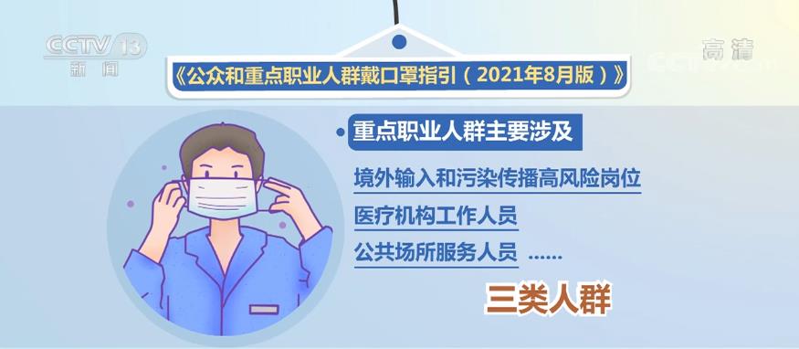 新版戴口罩指引中,重点职业人群主要涉及境外输入和污染传播高风险岗位、医疗机构工作人员和公共场所服务人员等三类人群。