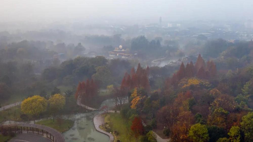 晨雾中的扬州瘦西湖(无人机照片)。新华社发(齐立广摄)