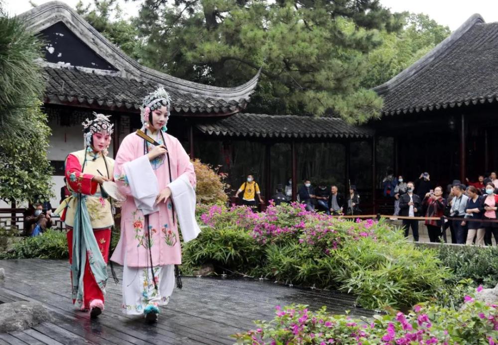 游客在苏州留园观看实景版昆曲《牡丹亭》。新华社发(杭兴微摄)