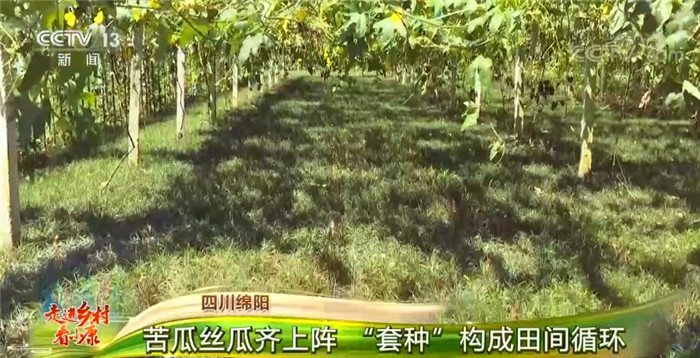 我们看到葱绿的麦冬长势茂盛,架上的苦瓜也非常水灵,这种复合种植的方式也是当地大力推广的,生态、环保,带给农民朋友的效益也更好。