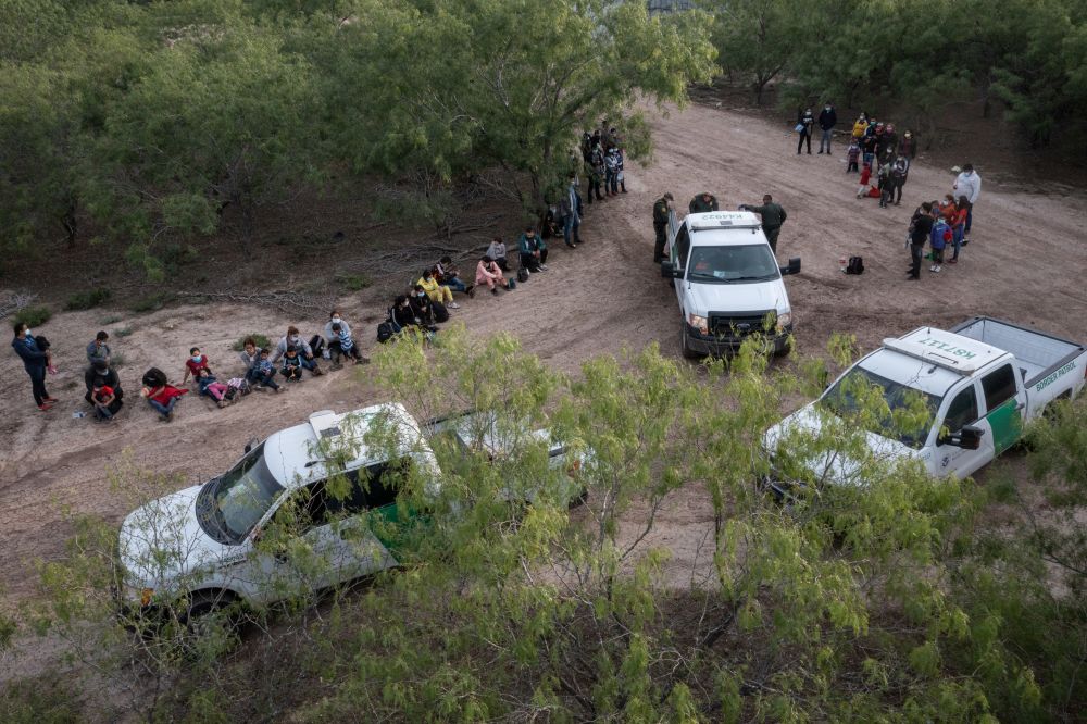 5月14日,美国边防警察在得克萨斯州佩尼塔斯市拦截一批从墨西哥非法入境的中美洲移民。新华社/路透