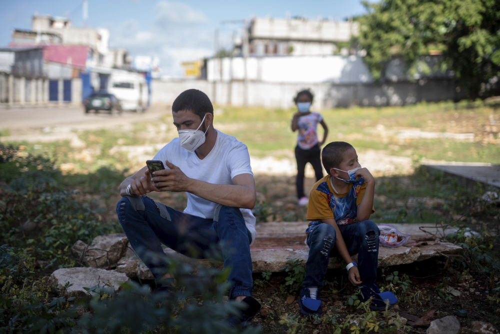 8月12日,一名被美国驱逐的中美洲移民在危地马拉边境小镇埃尔塞沃查看手机。新华社/美联