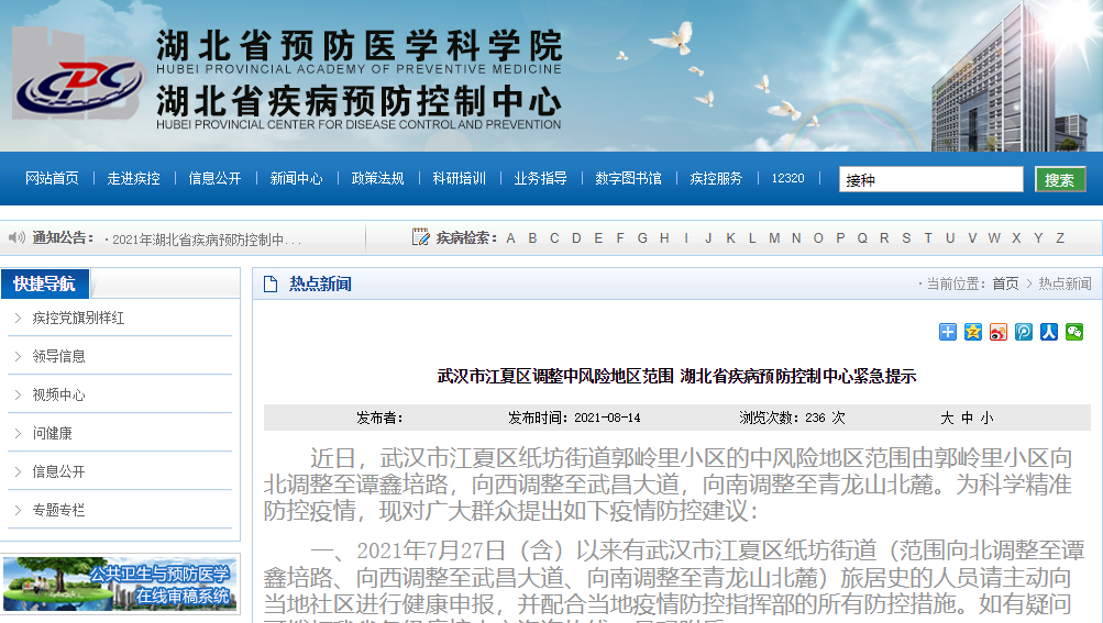 一、2021年7月27日(含)以来有武汉市江夏区纸坊街道(范围向北调整至谭鑫培路、向西调整至武昌大道、向南调整至青龙山北麓)旅居史的人员请主动向当地社区进行健康申报,并配合当地疫情防控指挥部的所有防控措施。如有疑问可拨打湖北省各级疾控中心咨询热线,号码附后。