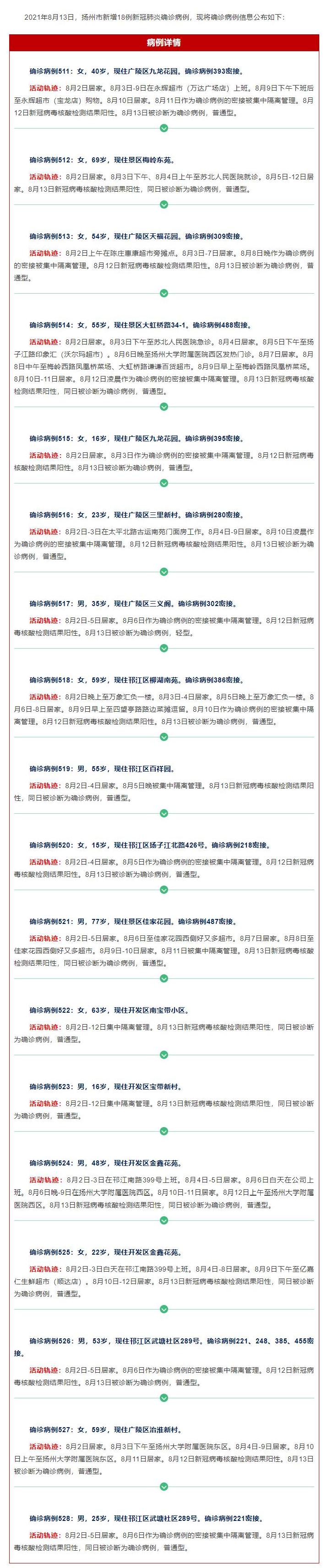 现将13日扬州新增的18例新冠肺炎确诊病例信息公布如下:
