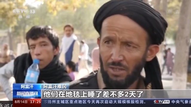 阿富汗难民:看看我孩子的处境吧,他们在地毯上睡了差不多2天了。没有人提供水、食物,甚至一个睡觉的场所。
